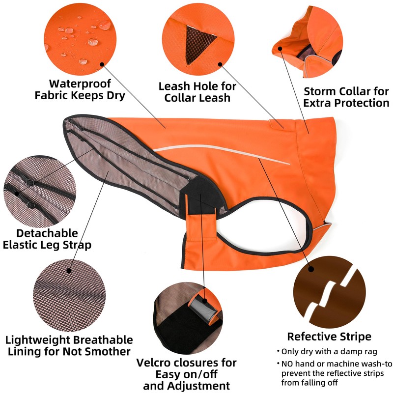 - MATERIAL: Premium lite weight outdoor breathable waterproof fabric equivalent to materials for human raincoat with reflective stripe.