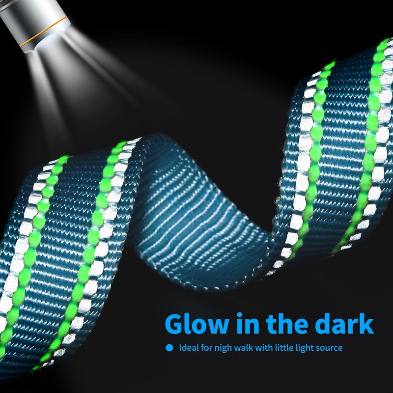 - Material and Strength: Strong Nylon belt with easy snap in belt buckle. Heavy duty D Ring. Dual Reflective and Luminous bands.