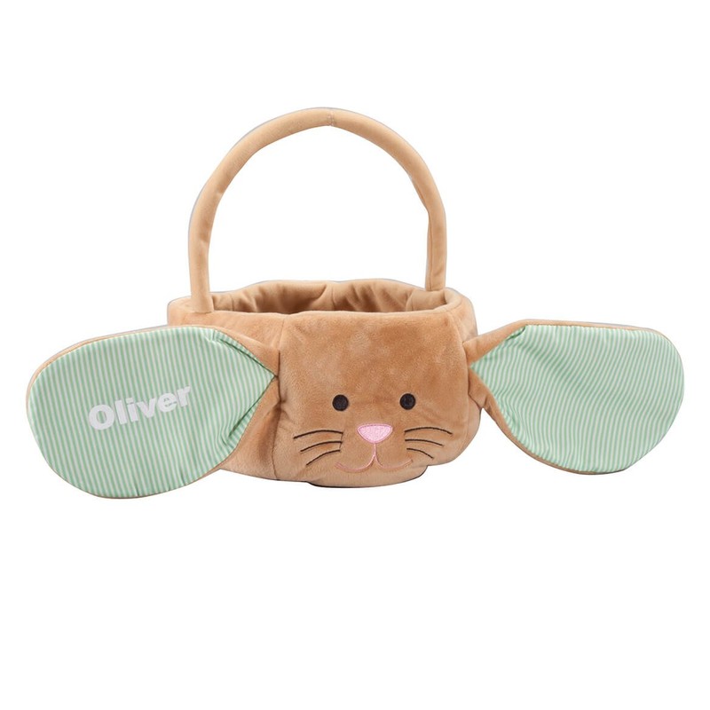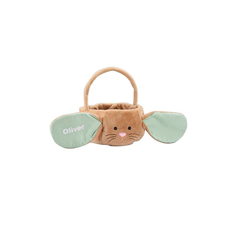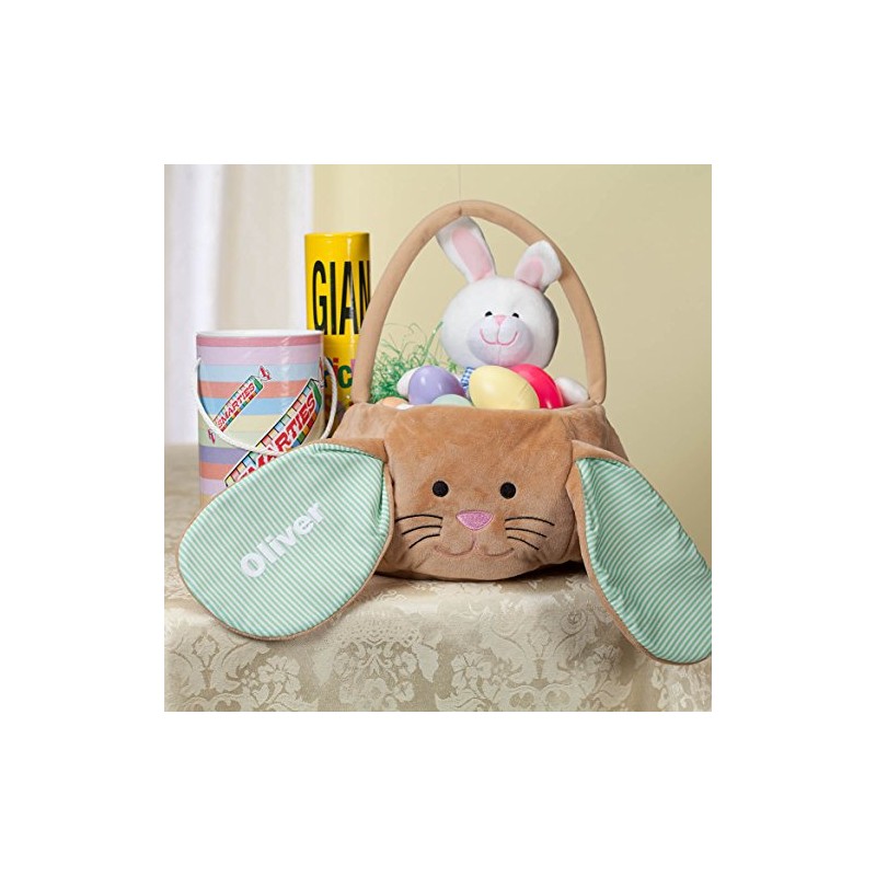 Miles Kimball Personalized Kids Easter Basket, Plush Brown Bunny with Floppy Pin Stripe Ears