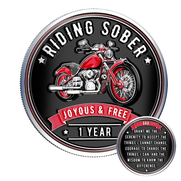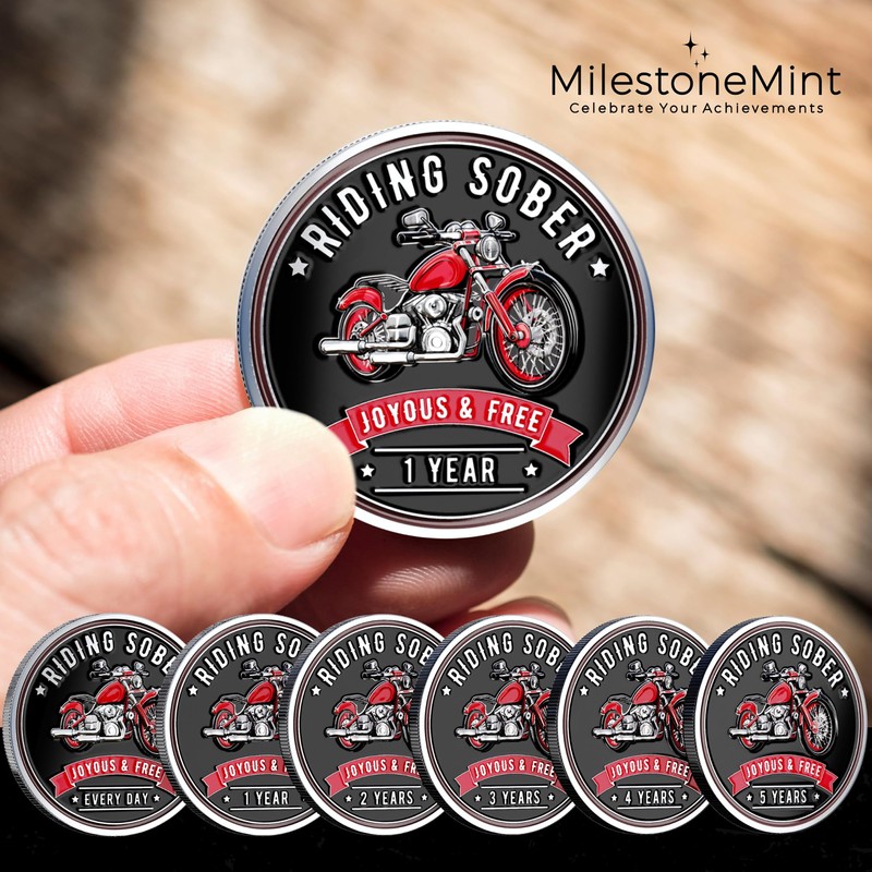 MilestoneMint 1 Year Sobriety Coin - Riding Sober AA Medallions - 1 Year AA Chips & Medallions to Celebrate Milestones - One Year Sober Coin Gift for Men & Women in Recovery