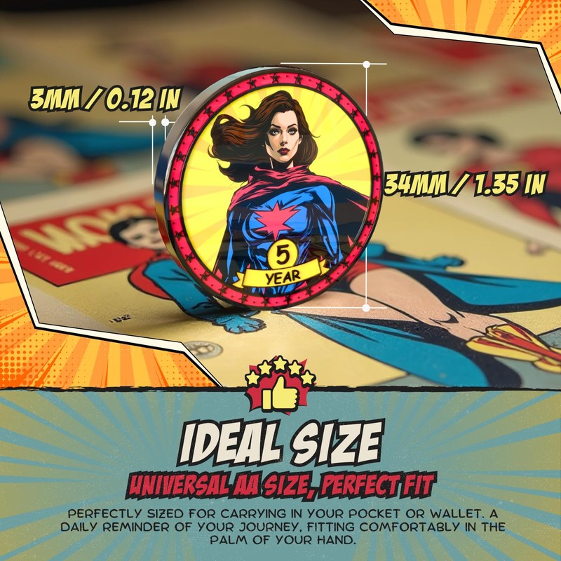 - PREMIUM SOBRIETY COIN: Our Superpower coin AA medallions are premium crafted with meticulous attention to detail and high quality durable materials featuring brightley colored graphics with an epoxy cover for a smooth finish.