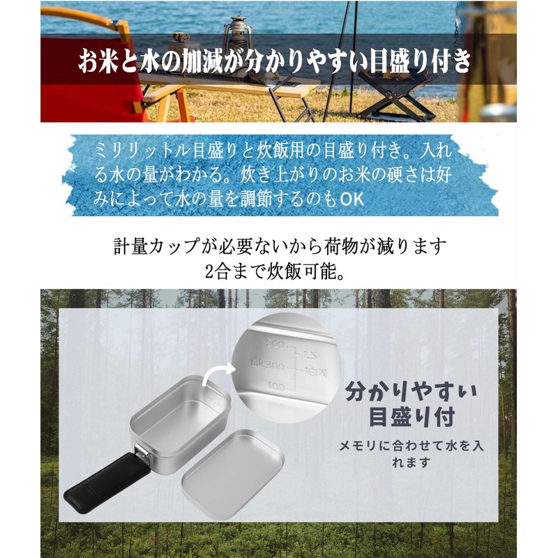 - (Easy and delicious cooking rice) Made of aluminum, it has good heat conductivity and allows you to cook rice in a plump and delicious way. Even if you think it is difficult to cook rice with apple, you can cook delicious rice without mistaking using solid fuel