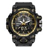 Military Style Digital Analog Watch, Large Face 2.2", 50m Water Resistant, Dual Time Zone, Alarm, LED Backlight, Stopwatch, PU Strap (Black Gold)