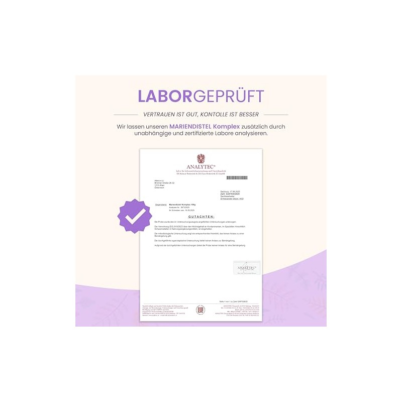 - Laboratory tested and made in Austria: we produce exclusively in Austria, as well as our milk thistle capsules are regularly examined by an independent laboratory. You can find the certificate of analysis under "Security documents".