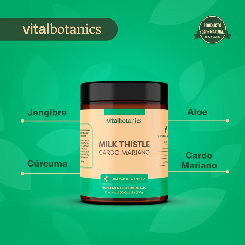 🌿 Milk Thistle | Cardo Mariano | 200 Cápsulas | VitalBotanics | Cuidado Natural del Hígado y Detox 🌱