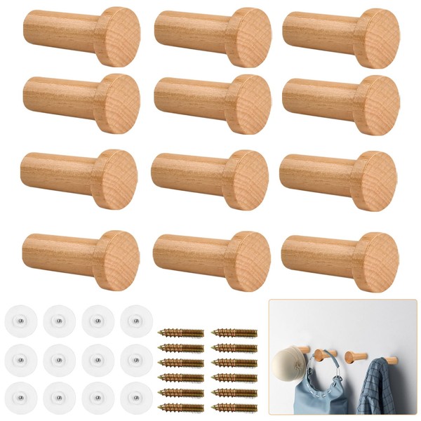 Milkary 12Pcs Wood Wall Hooks, Decorative Wooden Hat Hooks for Hanging, Modern Wall-Mounted Wooden Wall Pegs Bag Hangers Entryway Hooks for Hanging Clothes Towel Coat Cap Backpack
