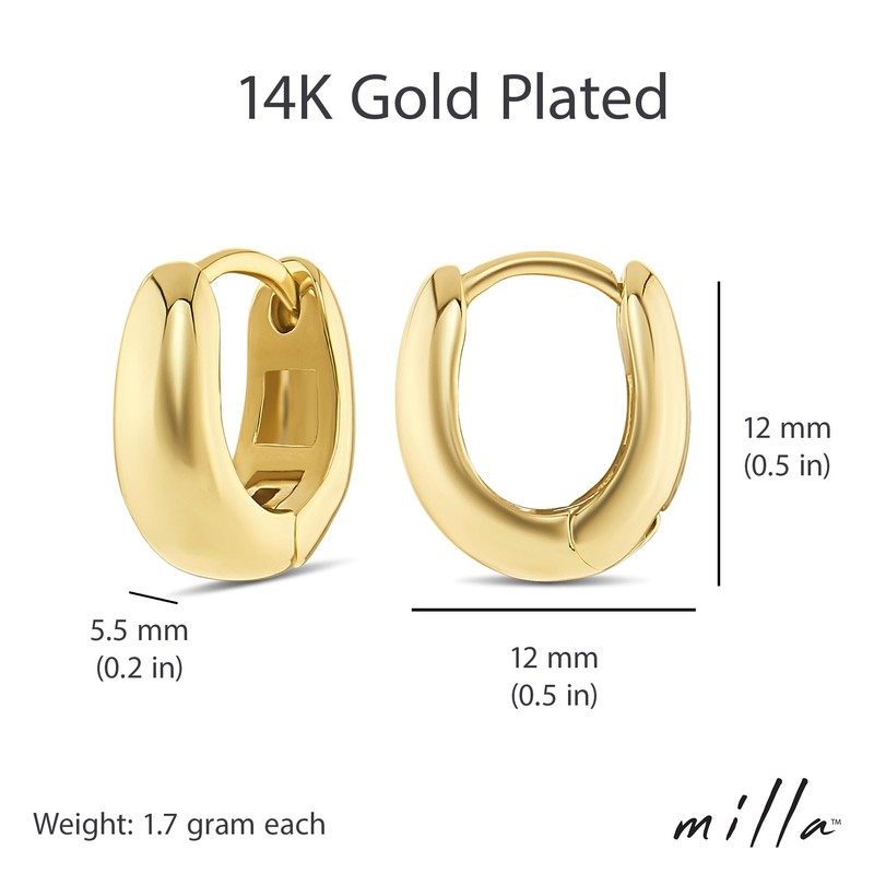 MILLA 14k Gold Huggie Earrings for Women Multipack & Individuals - Ear Huggers Earrings for Women Trendy Y2K Earrings, Preppy Earrings - Lightweight & Hypoallergenic (12 mm - 0.5 in)