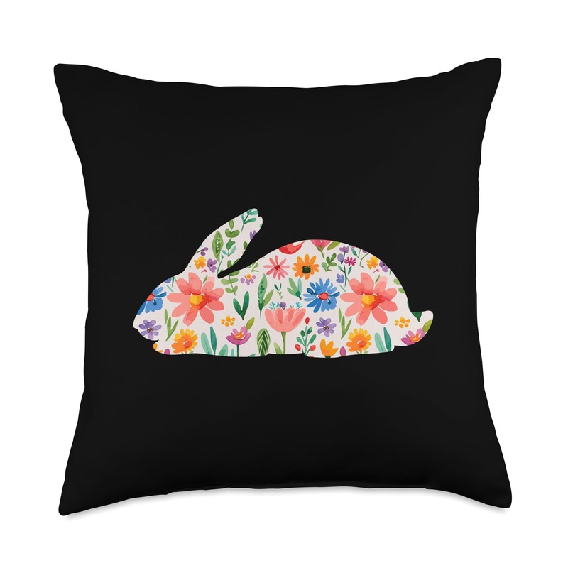 Miller Sye Flemish Giant Bunny Rabbit Watercolor Flowers Design Throw Pillow, 18x18, Multicolor
