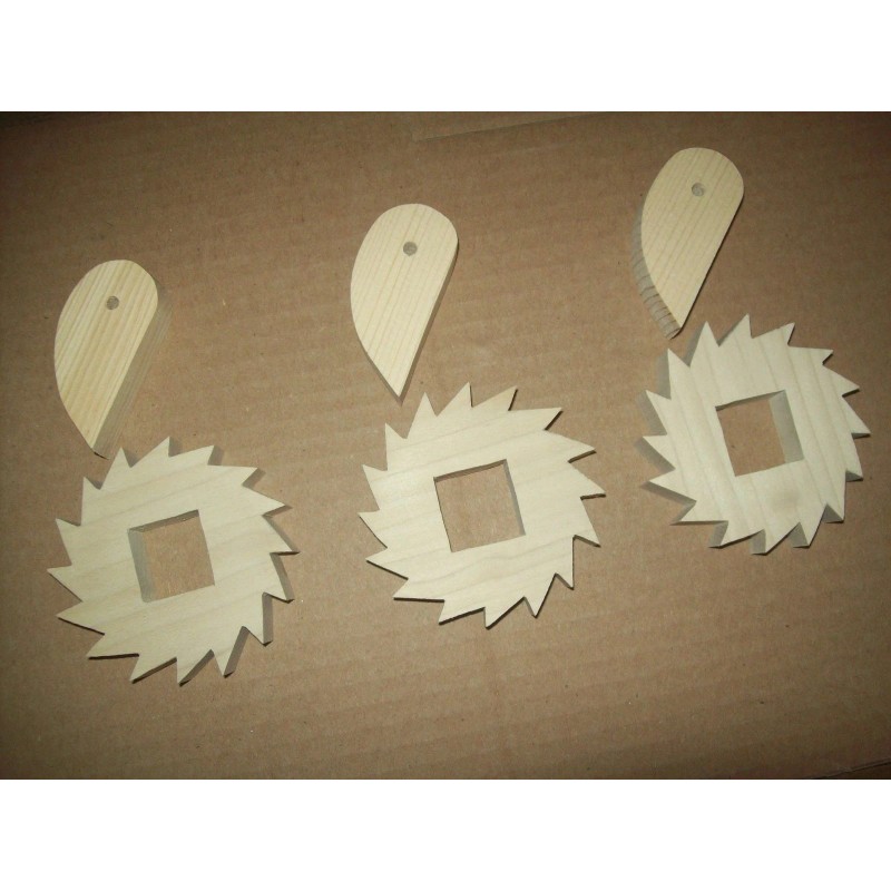 Three piece set of quilt frame gears and stop cogs for vintage quilt frames with square drive fabric poles. Gears are made from poplar hardwood and are 3 3/8" X 3/4" with a 1" square hole in the center.