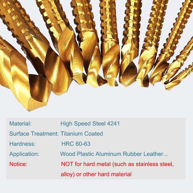 - 10 sizes: round shank; drill diameter: 3 mm / 4 mm / 5 mm / 6 mm / 6.5 mm / 7 mm / 8 mm / 9 mm / 10 mm / 13 mm.