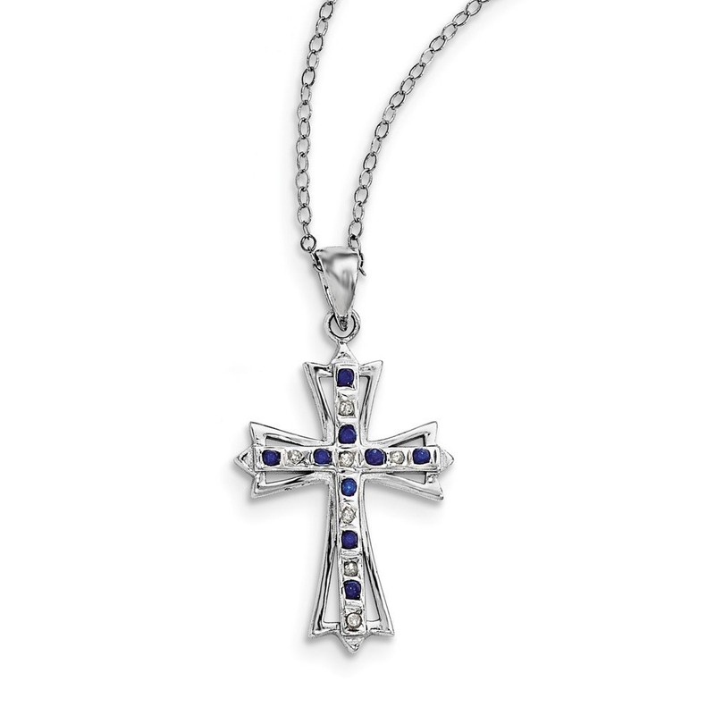 - 925 Sterling Silver Diamond Mystique Platinum-Plated Dia/Sapphire 18In Cross Necklace, 18" Length
