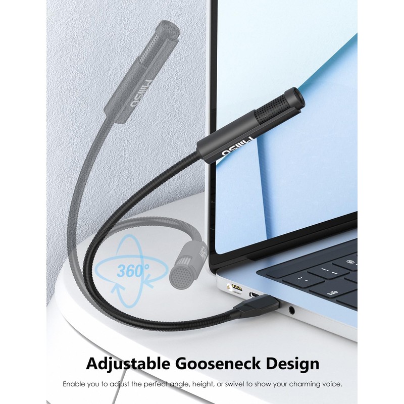 - Durable and Adjustable Gooseneck Design: This mini USB microphone adopts great metal carbon steel material, which can withstand more than 10000+ bending tests, and you can easily put it in an ideal position as you want. No extra cords and bases are needed, and the compact USB body design doesn't take up any additional space on your desk, and won't interfere with other devices when using other USB ports.