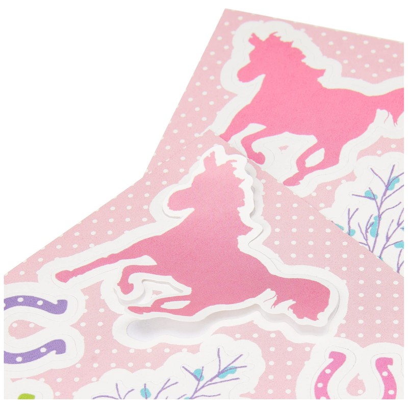 - Ach pack contains two sheets of assorted stickers - horses, trees and horse shoes
