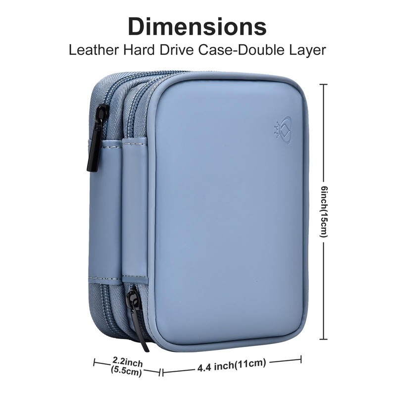 Miloocul Leather External Hard Drive Case for Western Digital WD Elements/WD My Passport/WD My Passport Ultra Portable Hard Drive Carrying Case of 1TB 2TB 4TB 5TB (Gray&Blue, Double Layer)