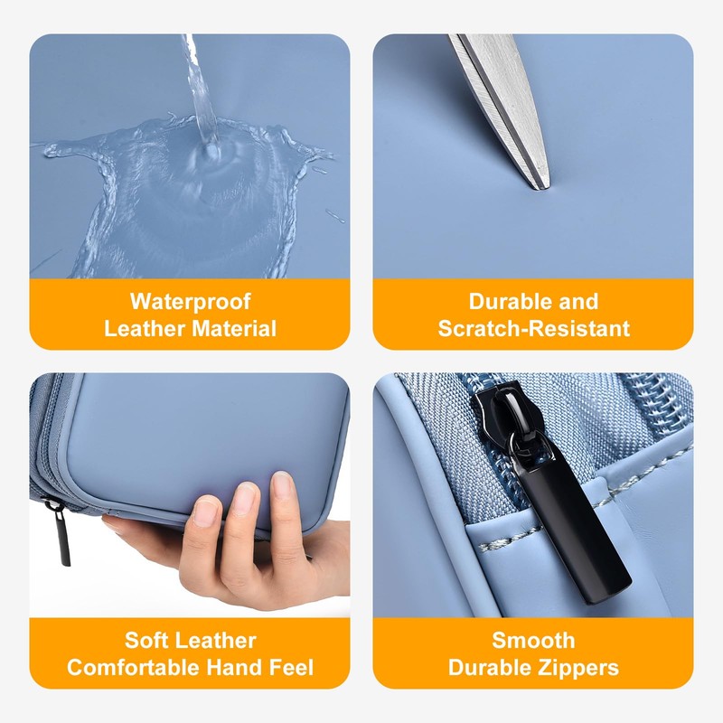 - 【WATERPROOF & SHOCKPROOF】The surface of this portable hard drive case is made of Advanced & Water-resistant Leather fabric which has a strong waterproof effect providing great protection for your stuff from getting wet. The cord organizer case has a shock-absorbing sponge layer in the middle and soft velvet inner lining to protect your items from impacts and scratches.