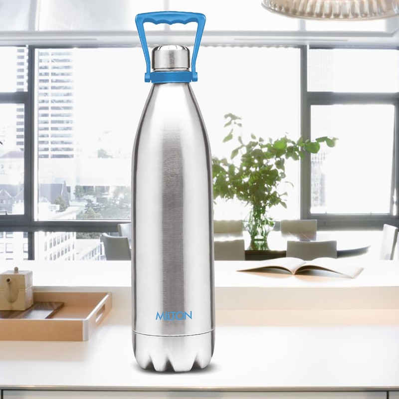 Milton Insulated Water Bottle (74 oz 2200 ml), Stainless Steel Double Walled Vacuum for 24 Hours Hot and Cold with Handle, Leakproof, BPA Free for Travel, Thermosteel Duo DLX 2200, 2.02 Ltr Silver