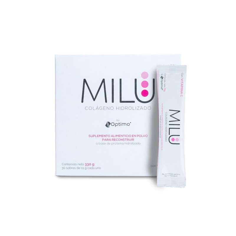 MILU | Colágeno Hidrolizado con Vitamina C | 30 Sobres individuales de 11g (1Caja) | Suplemento Alimenticio Sin Saborizantes - Sin Olor - Sin Azúcar | Péptidos de Colágeno Porcino | Apto para dietas Keto |
