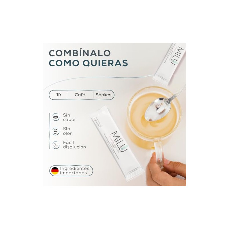MILU es más que una marca, es un sello de calidad Mexicana. 🇲🇽 Con una planta propia y procesos de calidad e inocuidad rigurosamente implementados, nos aseguramos de que recibas lo mejor. Pero eso no es todo: nuestro colágeno hidrolizado puro es de calidad farmacéutica y proviene directamente de Corea, un país reconocido mundialmente por sus altísimos estándares de excelencia. 💎 Prepárate para experimentar la diferencia que la calidad superior puede hacer. Es un colágeno tan puro que ni siquiera te darás cuenta que está ahí. ¡Sin sabor, sin olor y sin azúcar! 🤫 Solo beneficios.