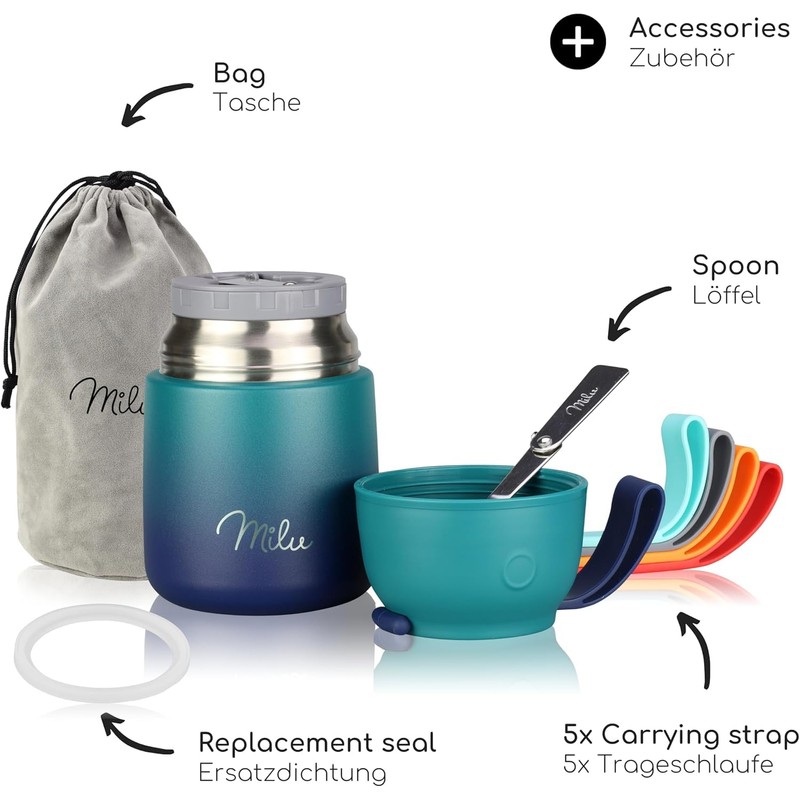 Milu® Thermal Container for Food 800 ml, Stainless Steel, Thermal Lunch Box, Soup Container to Go, Thermal Box for Keeping Warm Soups, Baby Porridge, Food Container, Porridge Warmer on the Go, Green