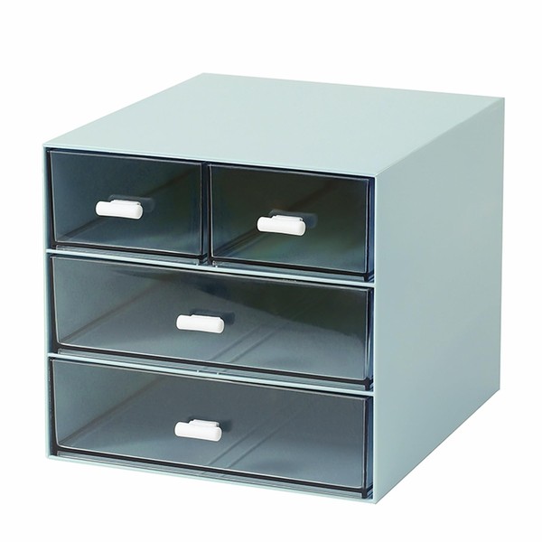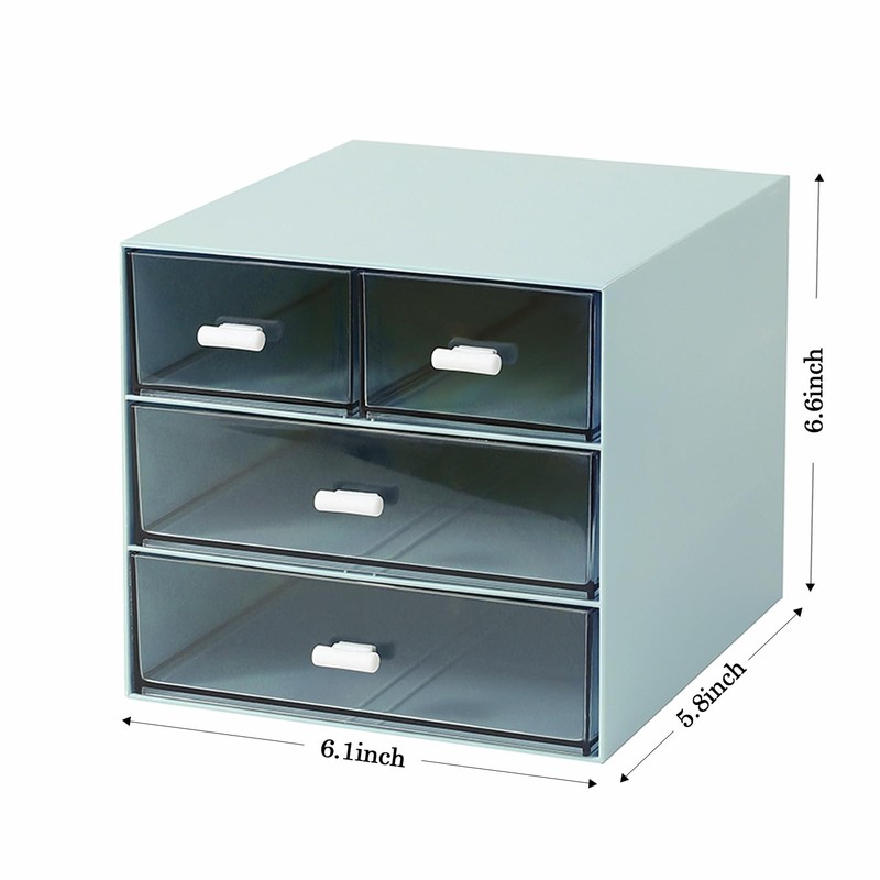 MILULUGO Organizador de maquillaje con 4 cajones, organizador de computadora, caja de almacenamiento de cosméticos para esmalte de uñas, lápiz labial, pinceles, joyas, cuidado de la piel, cajas de organización de baño, azul