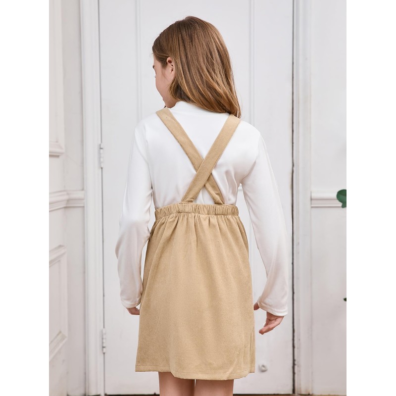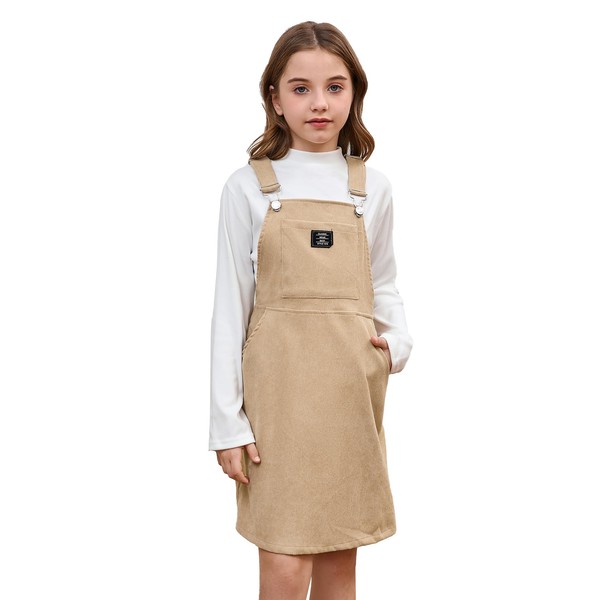 Milumia Girl Corduroy Crisscross Overall Dress with Pocket Khaki 9 Years