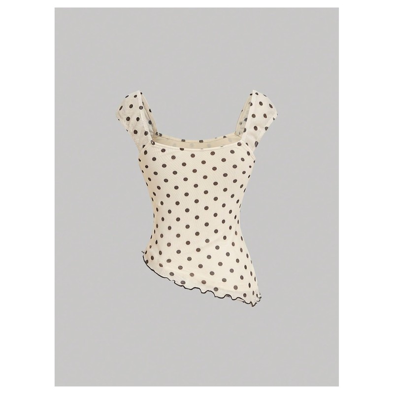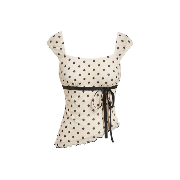 - Feature: Polka Dots, Square Neck, Sleeveless, Tie Front, Asymmetrical Hem, Lettuce Hem, Tank Tops for Women