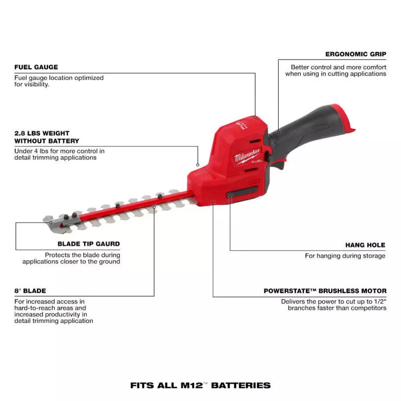 Milwaukee 2533-20 M12 FUEL 12V 8" Cordless Li-Ion Hedge Trimmer - Bare Tool
