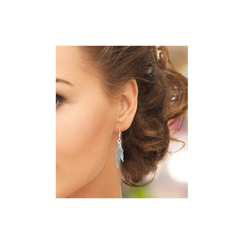 MIMI Sterling Silver Two Double Feathers Drop Dangle Earrings