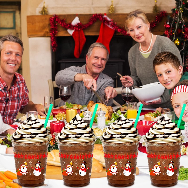 - Cute Christmas Theme Design: these Christmas 12 oz plastic cups have a variety of classic Christmas elements, such as Christmas trees, Christmas gifts, gingerbread men, moose, Christmas wreaths, greetings, etc., which are vivid and fun and can easily bring winter scenes and create a festive atmosphere