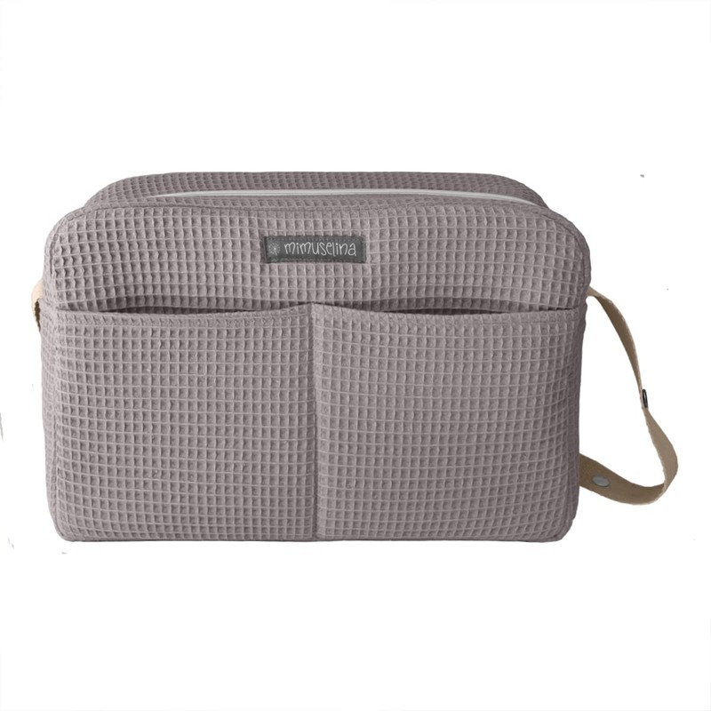 MIMUSELINA Pram Organiser with Large Capacity Pram Bag with + 7 Compartments - Changing Bag Pushchair Adjustable on the Handlebar of the Pram, Waffle Grey, Casual