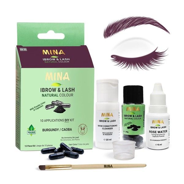 Mina ibrow & Lash Burgundy | Long Lasting Natural Spot coloring and Hair Tinting Powder, Water and Smudge Proof | No Ammonia, No Lead with Up to 10 Applications