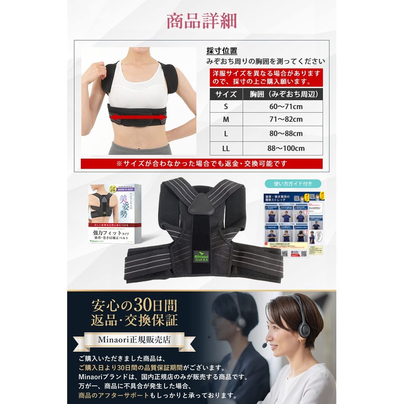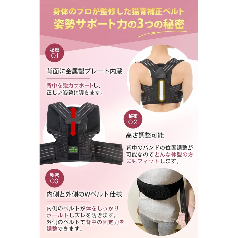 Minaoriフィットネス 姿勢サポーター 猫背 ベルト 強力フィット 姿勢ベルト [整体師監修] 巻き肩 背筋 サポート 男女兼用 mof-nkb2-s