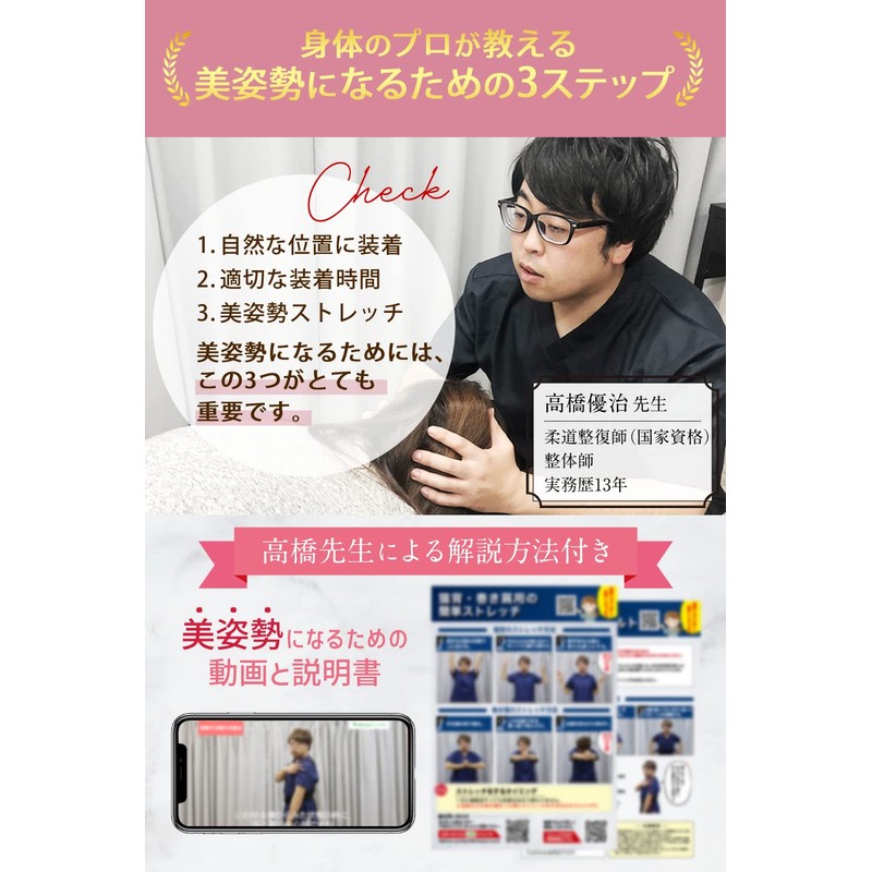 • 【美姿勢になるための3ステップマニュアル】実務経験13年の整体師が監修し、自然に美しい姿勢を身につけれるよう考案されたマニュアルになります。