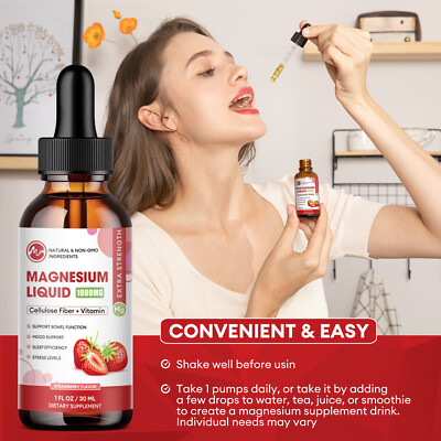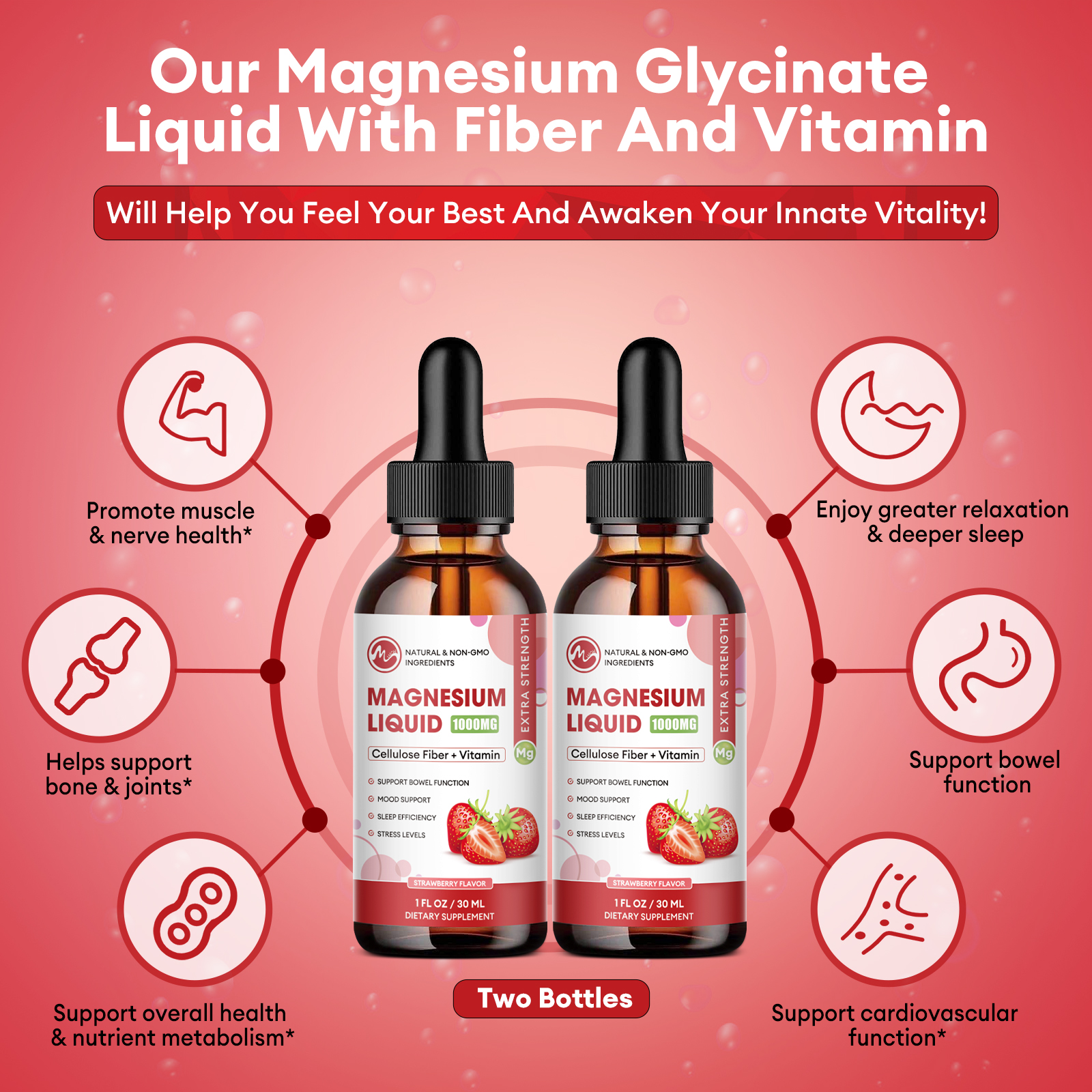 • Magnesium Liquid Drops Supplement – Formulated with 1000mg of magnesium glycinate and magnesium element, which experience enhanced stress resistance, a calm mood, and better sleep. Enhanced with cellulose fiber 500mg, Bromelain, Vitamins B,C,D and zinc, supports brain health, bone formation, and energy, also helps you digest food well, and takes care of your heart.