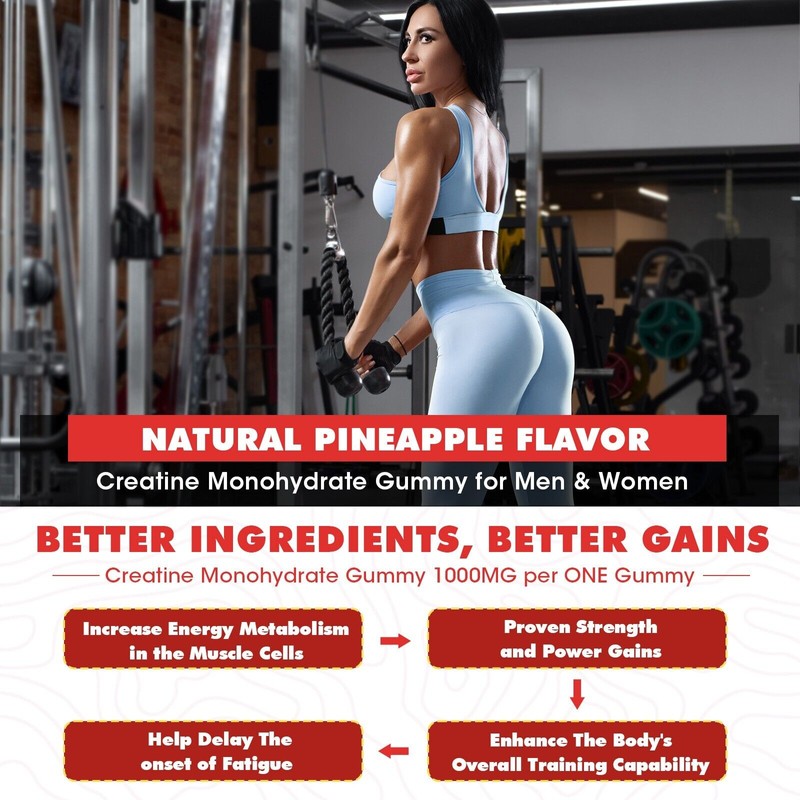 **Elevate Your Fitness Experience:** Feel the rush of confidence as you fuel your body with our pineapple-infused creatine gummies for better performance , crafted to enhance your workouts and support your journey to becoming fitter and stronger.