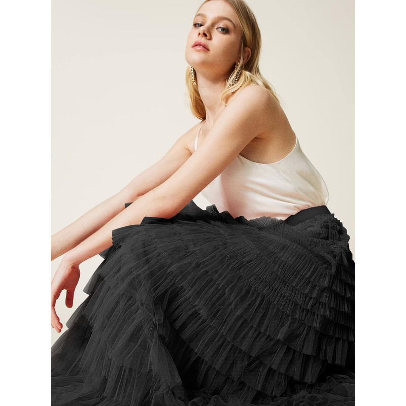 • Match: long tulle skirt for women, goes well with tanks, camis, shirts, sweaters, jacket, flats or heels for a chic elegant look.