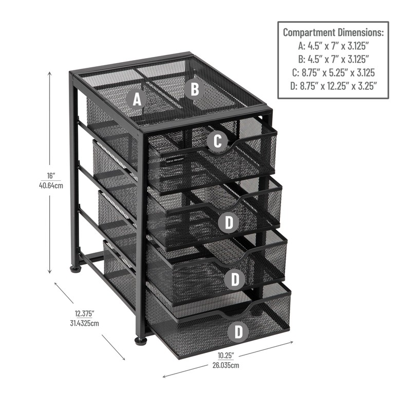 Mind Reader File Storage Drawers, Desktop Organizer, File Storage, Office, Metal Mesh, 10.25"L x 12.375"W x 16"H, Black