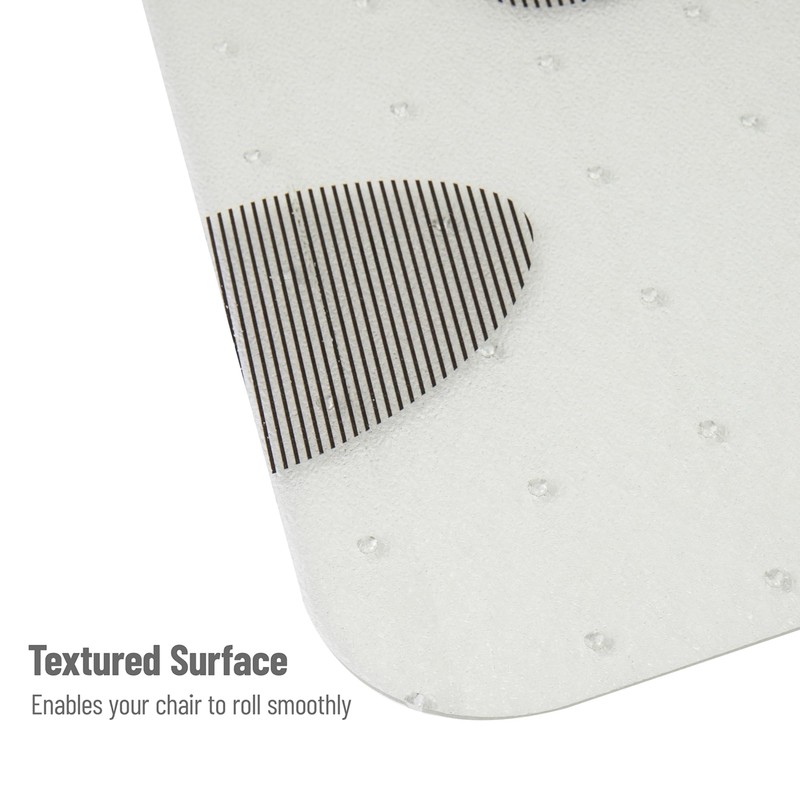 - Protection for low-pile carpets: The chair mat serves as a protective barrier, preventing damage to your low-pile carpeted floors from the wheels of your chair. It also helps reduce the buildup of carpet fibers on the chair casters