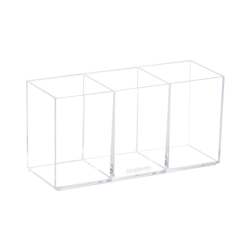 Mind Reader Pen and Accessories Holder, Desktop Organizer, Makeup Organizer, Office, Acrylic, 7" L x 2.5" W x 3.5" H, Clear