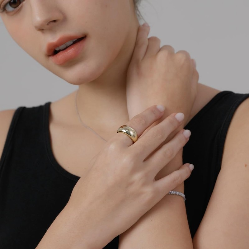 MINDDHA 14K Gold Plated Chunky Dome Ring |Puffy Dome Stackable Rings | Signet Ring for Women Size 10