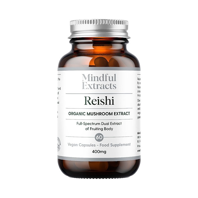 The Reishi mushroom has been used throughout Asia for millennia as part of traditional practices. • 800mg 15:1 ratio extract of organic Reishi (ganoderma lucidum) • Premium quality log-grown extract Mindful Extracts only use the fruiting body of the Reishi mushroom, which is dual extracted to concentrate its active triterpenoids and polysaccharides compounds. This creates a potent mushroom supplement.