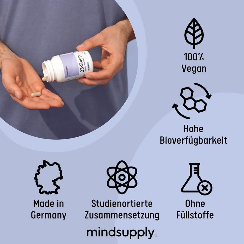 - ✓ Correct dose at the right time – take a capsule of mindsupply Sleep 30-60 minutes before going to sleep with plenty of water. One sleeping tablet contains 0.33 mg melatonin