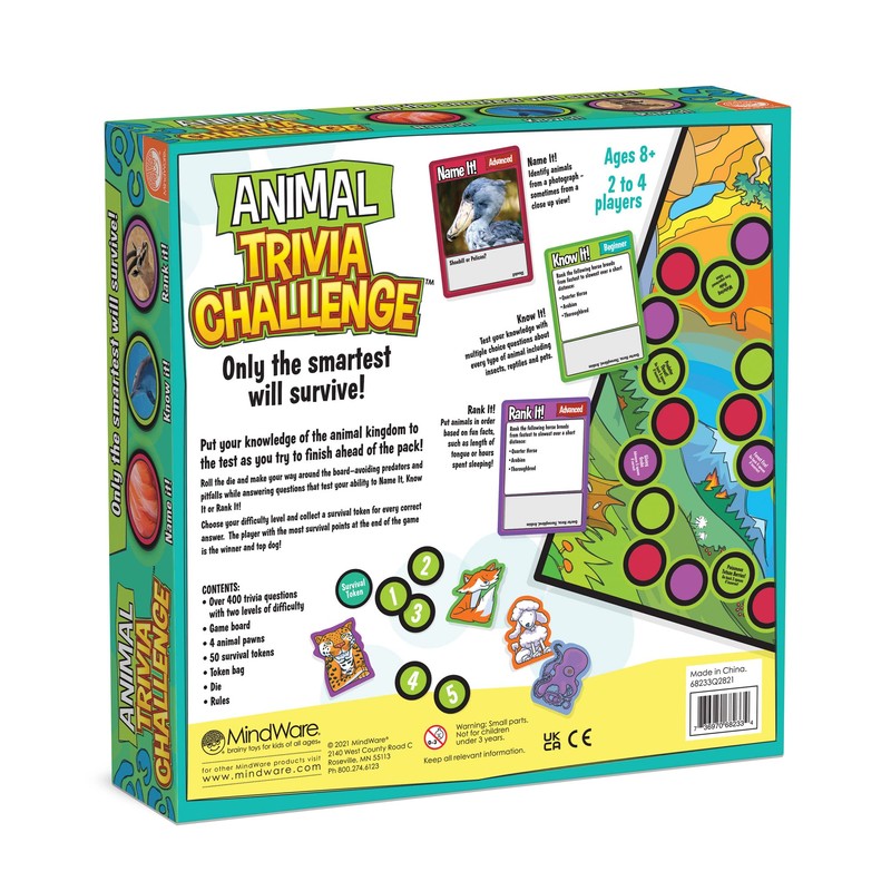 - BENEFICIAL SKILLS: Like all MindWare products, this game teaches a multitude of beneficial skills. Our Animal Trivia Challenge Game strengthens social interaction, logic, zoology, math, deductive reasoning, critical reasoning, problem solving, and more.