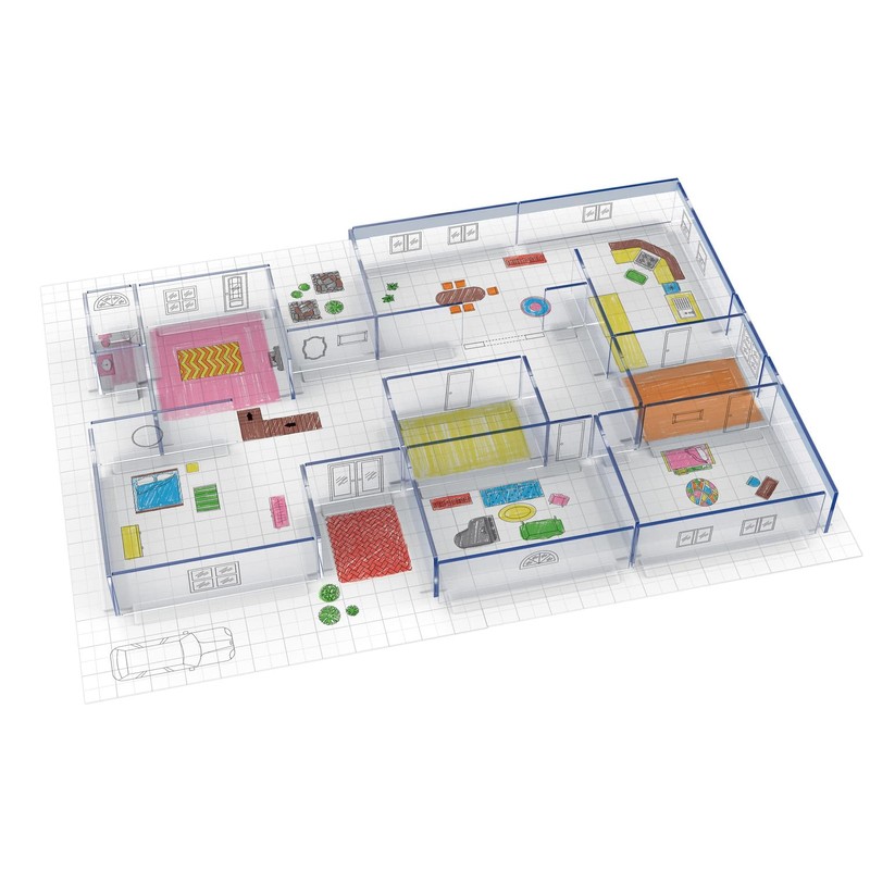 - This architecture kit includes: Floor Plan Grid, 2 Base Boards, 36 Walls, 10 Tracing Paper Sheets, 4 Patterned Paper, 5 Floor Plan Sheets, 3 Wall Cling Sheets, Dry Erase Marker, Drafting Pencil, 8 Colored Pencils, Eraser, T-Ruler, Drafting Triangle with Protractor, Compass, Glue Stickers, Glue Stick (Ages 8 and up)