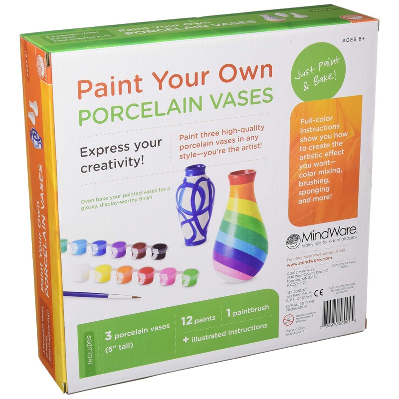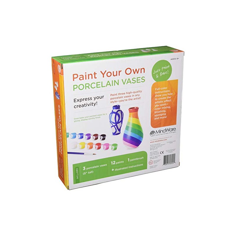 - EXPRESS YOUR CREATIVITY: Paint Your Own Porcelain Vases from MindWare are easy to use. Simply Paint, Bake and Display!