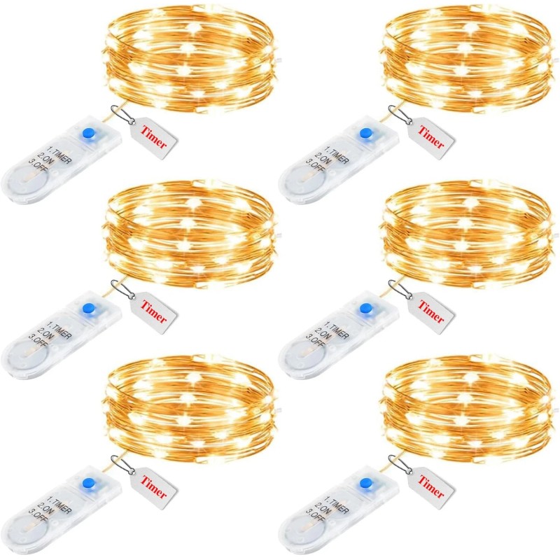- 6 Pack Battery Operated Fairy Lights with Timer - Powered by 2 × CR2032 button batteries (included), the 7 feet micro fairy light with 20 upgraded energy-efficient LEDs is perfect for both everyday decorations as well as holiday decor. The thin copper wiring and small-sized LED bulbs will add a delicate and cozy touch to your personal space