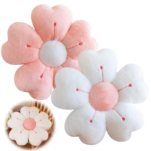Mineup 2 Pcs Flower Pillow, 35cm Flower Cushion, Flowers Shaped Cushion Floor Chair Seat Pad for Home Bedroom Decoration Sofa Chairs and Car Seats, Lovely Gifts, Fluffy Soft, White&Pink