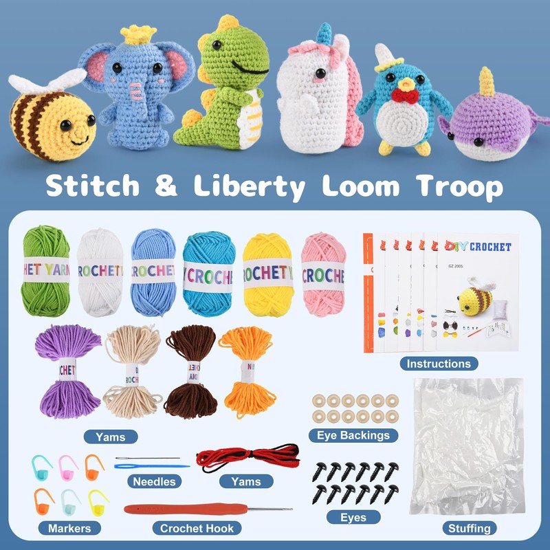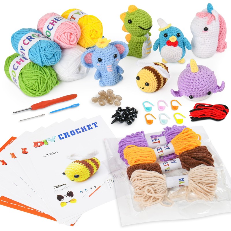 - MINGOMINGO Learn to Crochet Kit for Beginners - 6 Animal Patterns with Video Tutorials - Kids & Adults Starter Set with Hooks, Yarn & Step-by-Step Guide