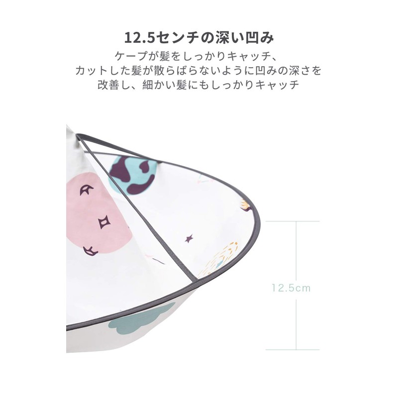 • [Product Details] Product Name: Children's Hairdressing Cape; Material: Polyester. Size: When in use, diameter approx. 23.6 inches (60 cm), when stored: approx. 11.4 inches (29 cm). Product Name: Cut Scissor (W x D x H): 5.7 x 0.8 inches (14.5 x 2 x 6.5 cm)