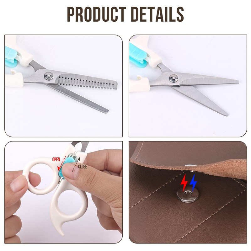 • Set Contents: Cut scissor x 1, Sening scissor x 1, Hairdressing Cape. Short Blade Scissors for Babies and Toddlers Cut a little bit Locking mechanism